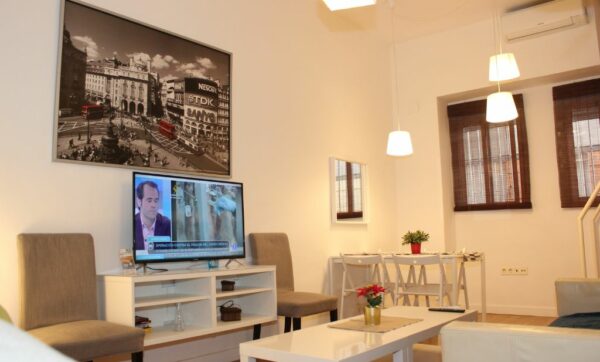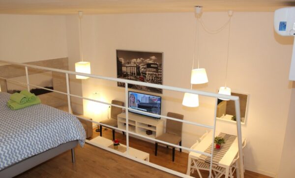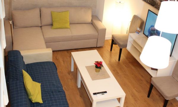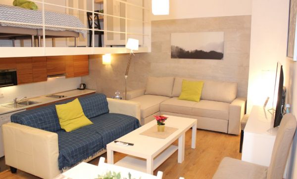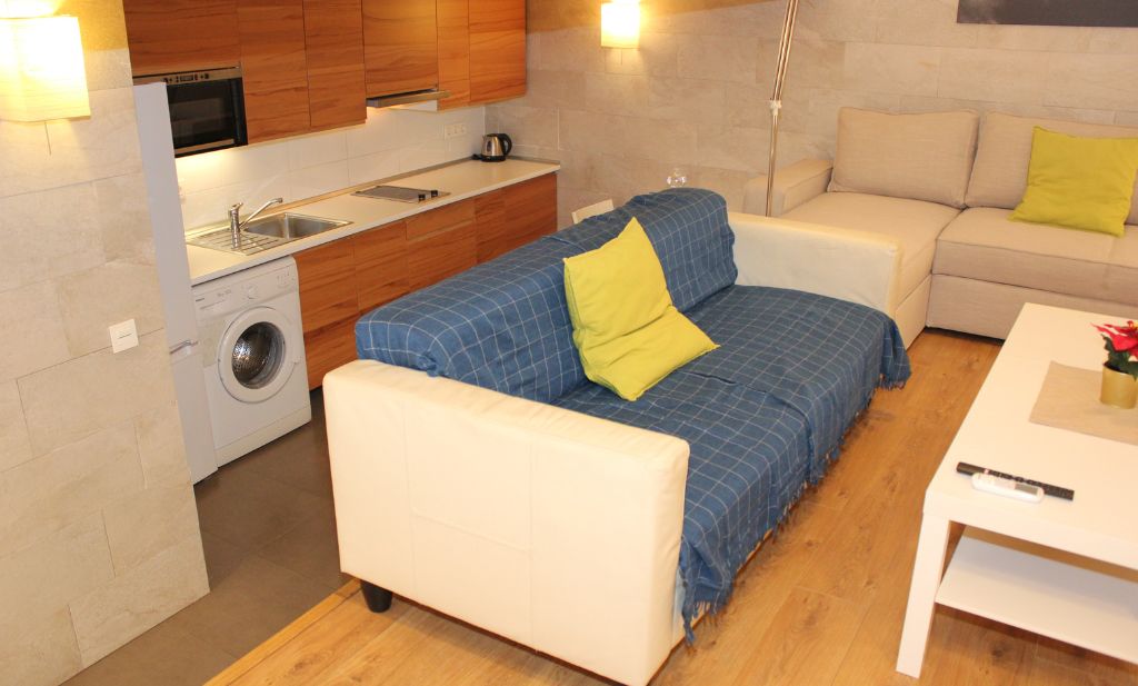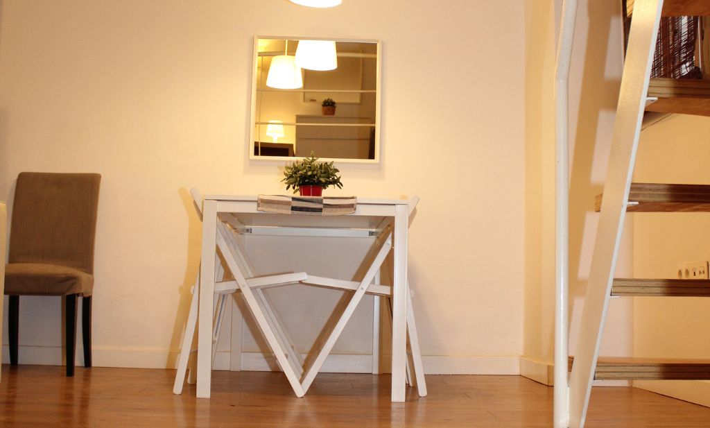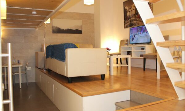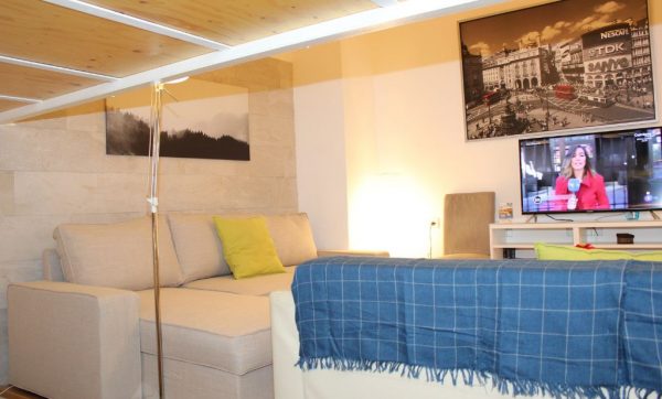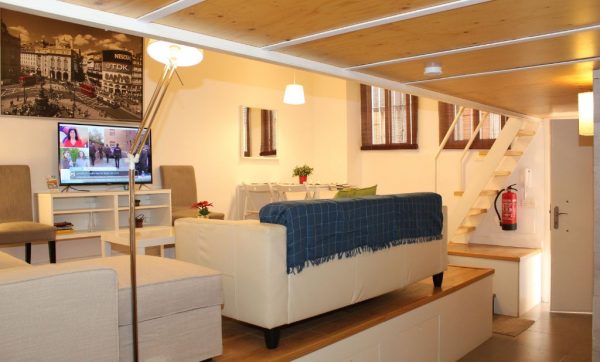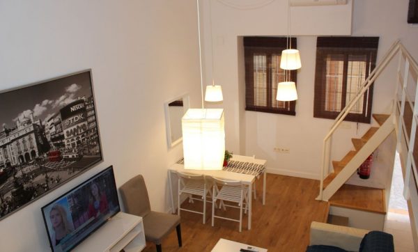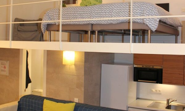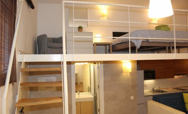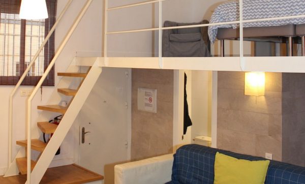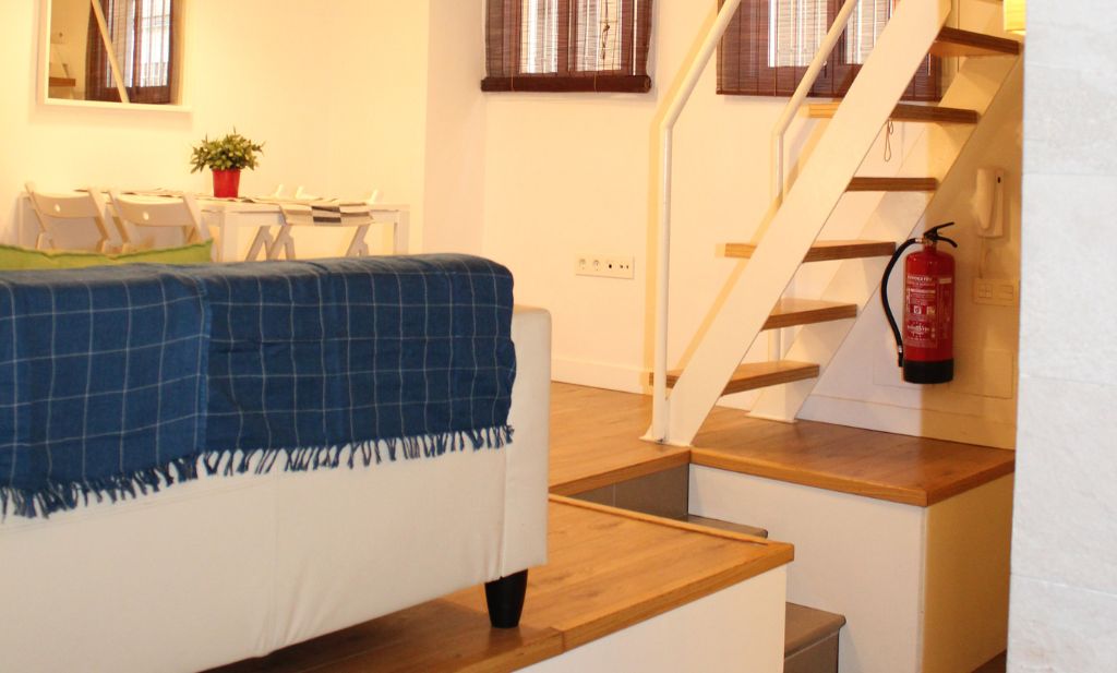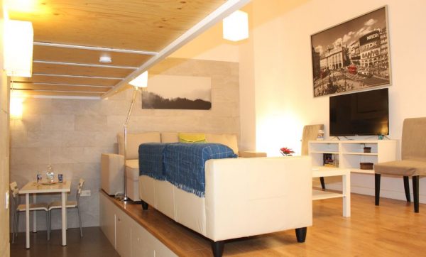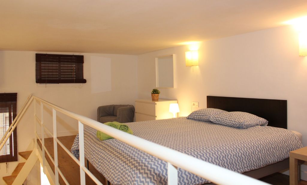 Dirección: Pasaje Clavero 2. Apartamento tipo Loft. Con entrada privada, zona de estar, de dormir y de cocina en diferentes niveles, utensilios de cocina y aire acondicionado. El sofá cama opcional es para 2 personas.